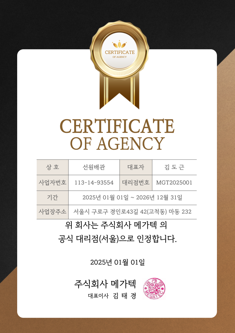대리점 인증서 / Certificate of Agency